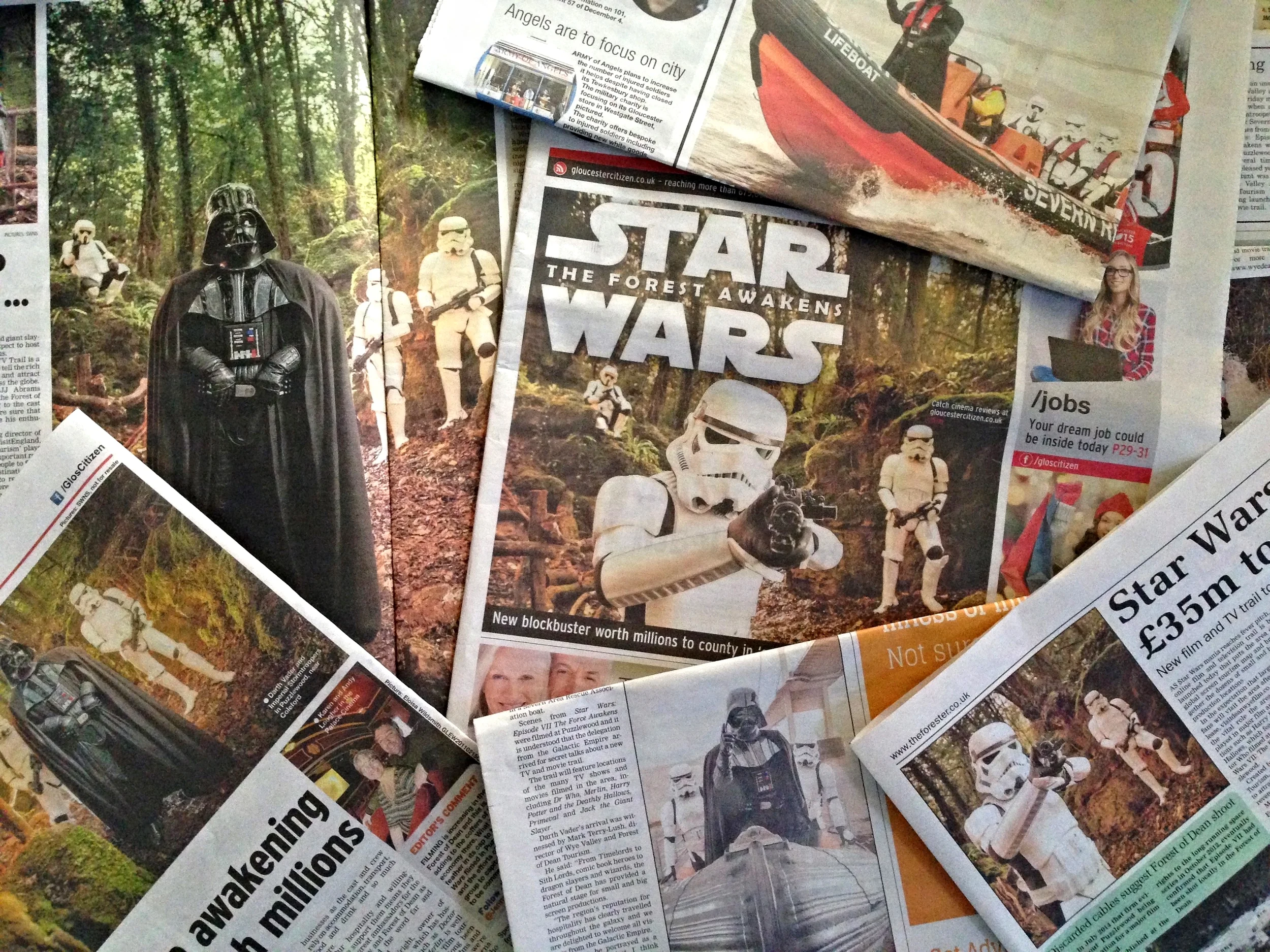 Last week I was asked by Wye Dean Tourism to maximise the PR potential of the forthcoming Star Wars being filmed in their patch. I was invited to join Darth Vader and some Storm Troopers on a trip to Puzzlewood and the River Severn as the guests of SARA.